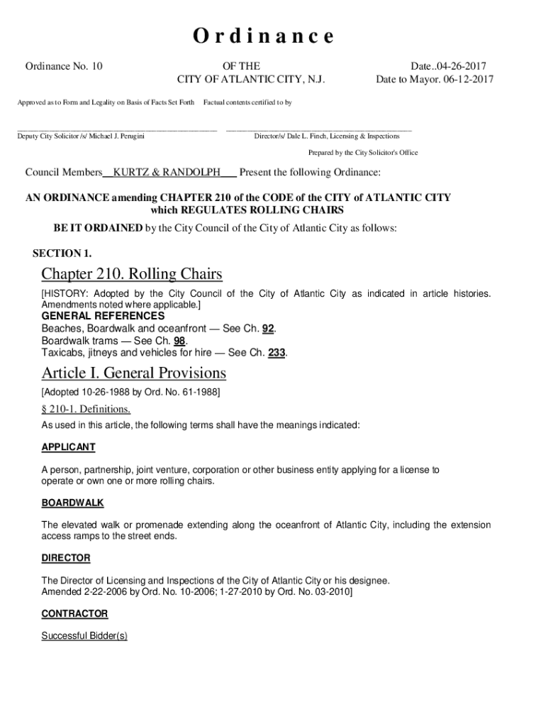 Ordinance No. 10OF THE CITY OF ATLANTIC CITY, N.J. Approved as to Form and Legality on Basis of Facts Set Fortunate.04262017 Date to Mayor. 06122017Factual contents certified to by___ Deputy City