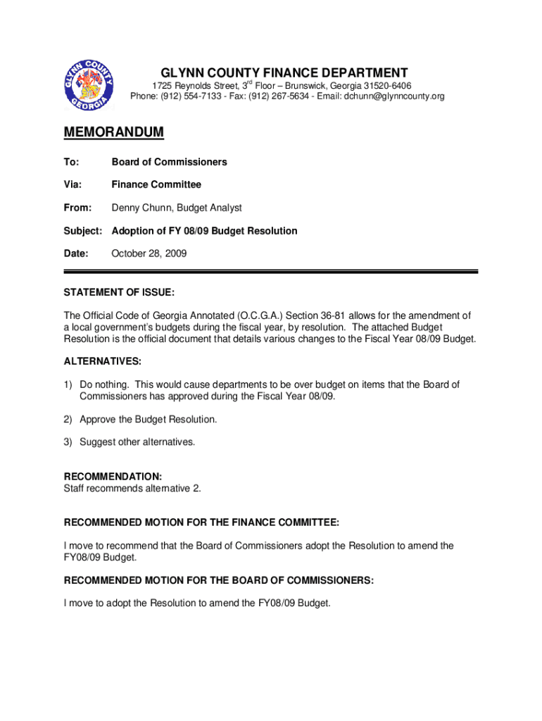 Phone: (912) 5547133 Fax: (912) 2675634 Email: dchunn@glynncounty.orgMEMORANDUM