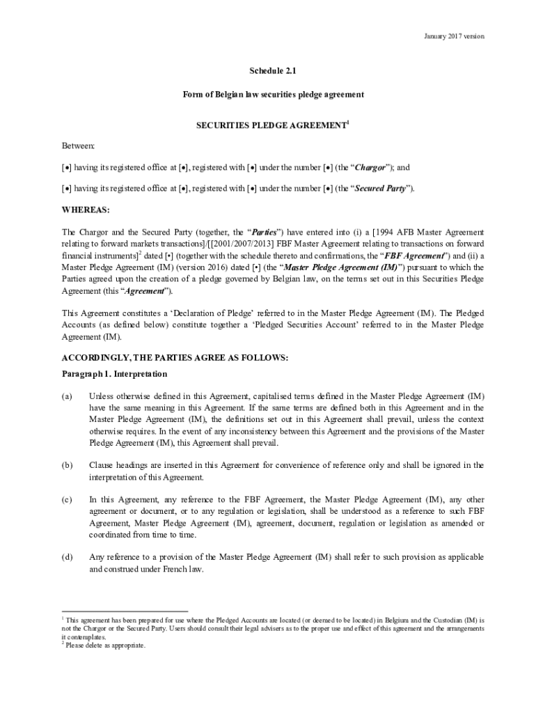 Get the free Form of Belgian law securities pledge agreement