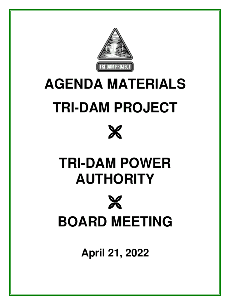 AGENDA MATERIALS TRIAL PROJECT TRIAL POWER AUTHORITY BOARD MEETING April 21, 2022REGULAR BOARD MEETING AGENDA TRIAL PROJECT of THE OAKDALE IRRIGATION DISTRICT and THE SOUTH SAN JOAQUIN IRRIGATION