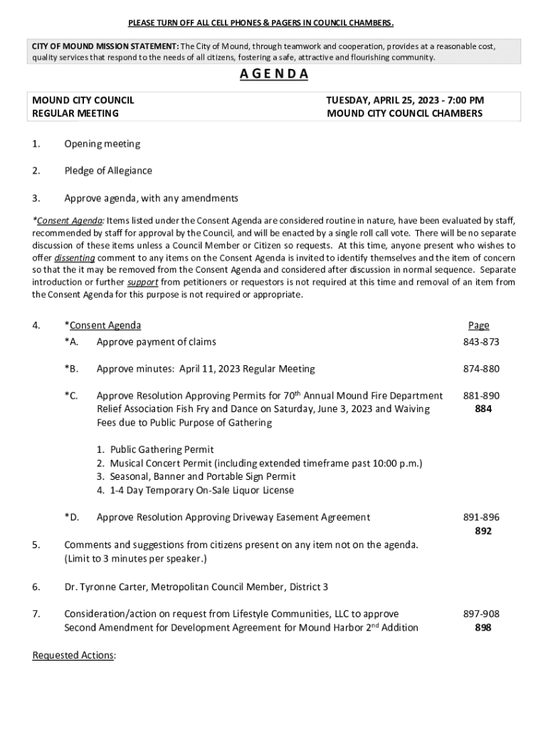 PLEASE TURN OFF ALL CELL PHONES & PAGERS IN COUNCIL CHAMBERS. CITY OF MOUND MISSION STATEMENT: The City of Mound, through teamwork and cooperation, provides at a reasonable cost, quality services