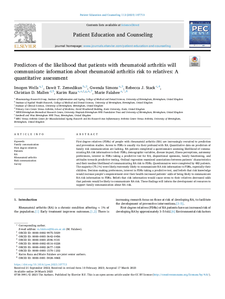 Patient Education and Counseling 112 (2023) 107713Contents lists available at ScienceDirectPatient Education and Counseling
