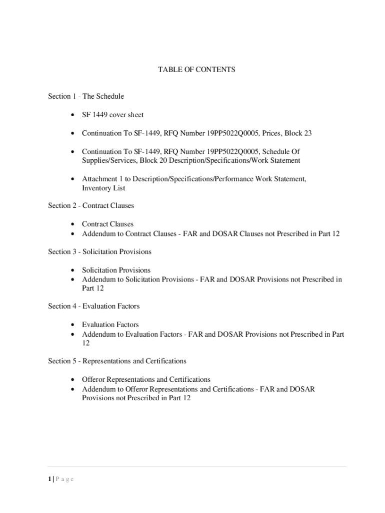 SF 1449 cover sheetContinuation To SF1449, RFQ Number 19PP5022Q0005, Prices, Block 23Continuation To SF1449, RFQ Number 19PP5022Q0005, Schedule Of