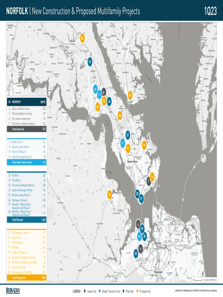 1Q23NORFOLK | New Construction & Proposed Multifamily Projects 823320 IDPROPERTY6 7 8 9Attain at Harbor View The Constellation on King The James on Merrimack The Arbors at Western Branch300 159 125