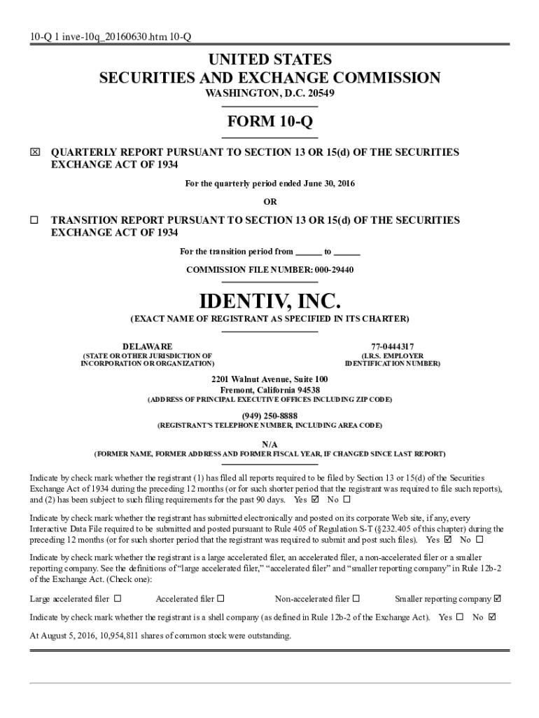 10-q 1 inve-10q20160630 is a quarterly report filed with the Securities and Exchange Commission (SEC) by public companies.
