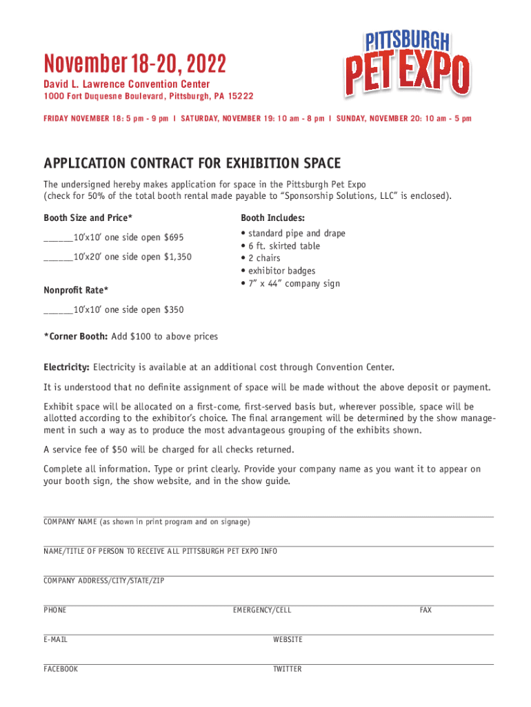 November 1820, 2022 David L. Lawrence Convention Center1000 Fort Duquesne Boulevard, Pittsburgh, PA 15222 FRIDAY, NOVEMBER 18: 5 pm 9 pm | SATURDAY, NOVEMBER 19: 10 am 8 pm | SUNDAY, NOVEMBER 20:
