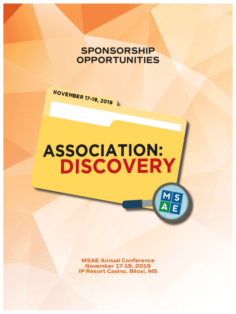 SPONSORSHIP OPPORTUNITIES NOVEMBER1719,2019MSAE Annual Conference November 1719, 2019 IP Resort Casino, Biloxi, SPONSORSHIP OPPORTUNITIES All Sponsorships Are Exclusive (Except Where Noted) Please