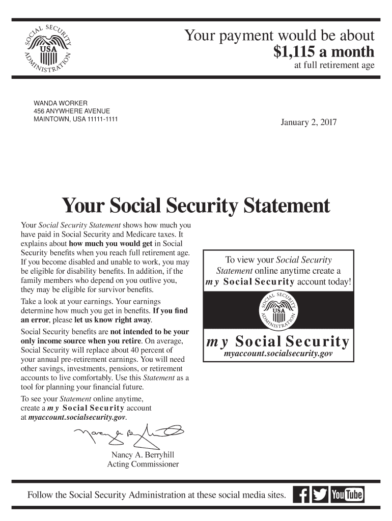 MAINTAIN, USA 111111111January 2, 2017Your Social Security Statement