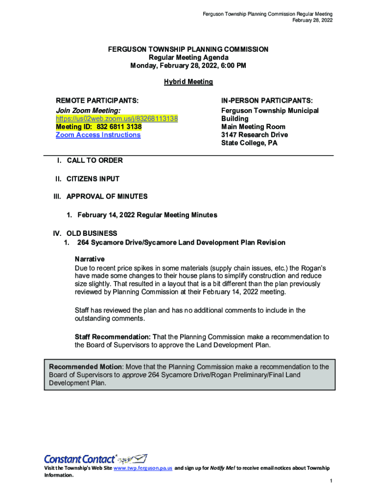 February 28, 2022FERGUSON TOWNSHIP PLANNING COMMISSION