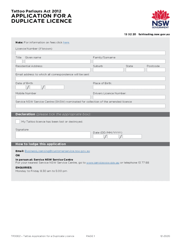 Get the free Apply for a tattoo parlour operator licence - Service NSW