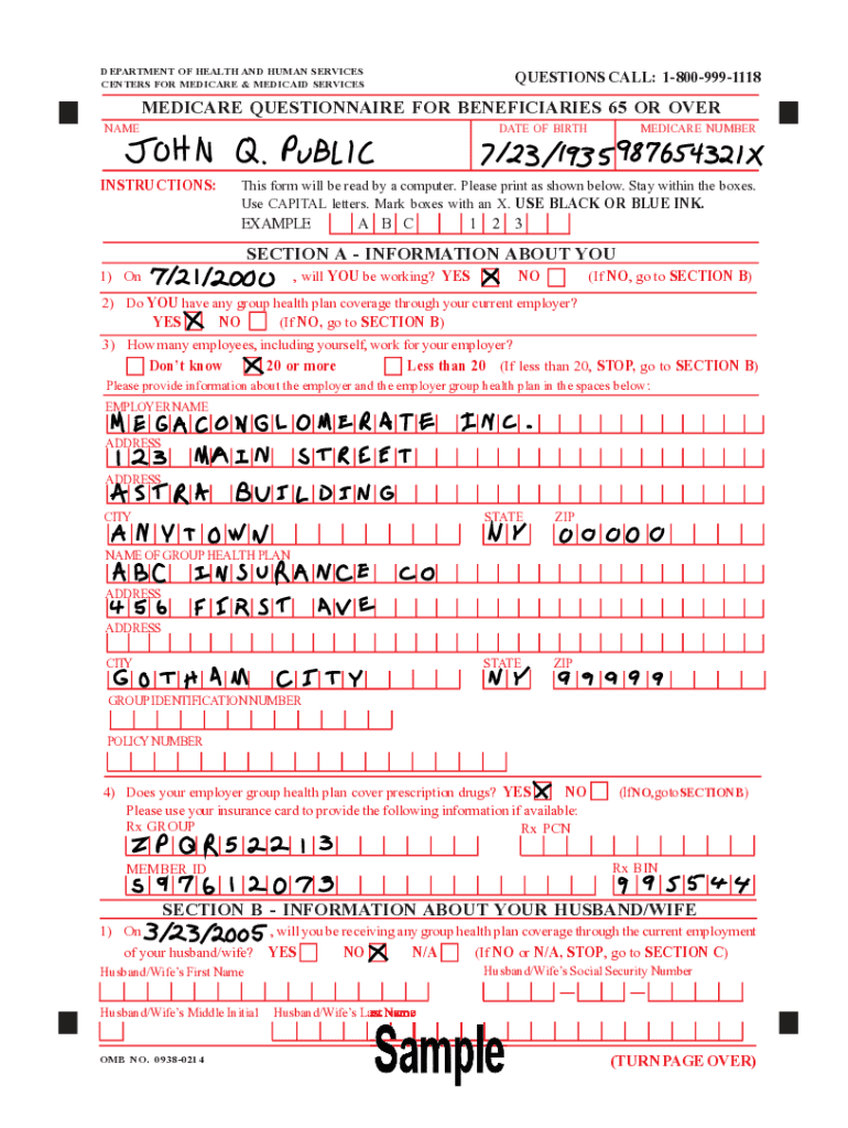 CENTERS FOR MEDICARE & MEDICAID SERVICESQUESTIONS CALL: 18009991118MEDICARE QUESTIONNAIRE FOR BENEFICIARIES 65 OR OVER