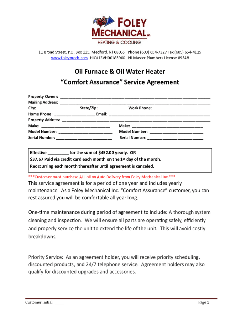 Get the free Service-AgreementOil-Furnace-&-Oil-Water-Heater