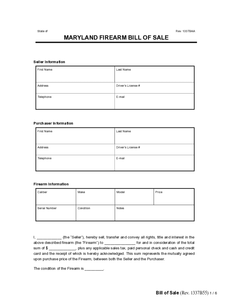 State of ___Rev. 1337BAAMARYLAND FIREARM BILL OF Reseller Information