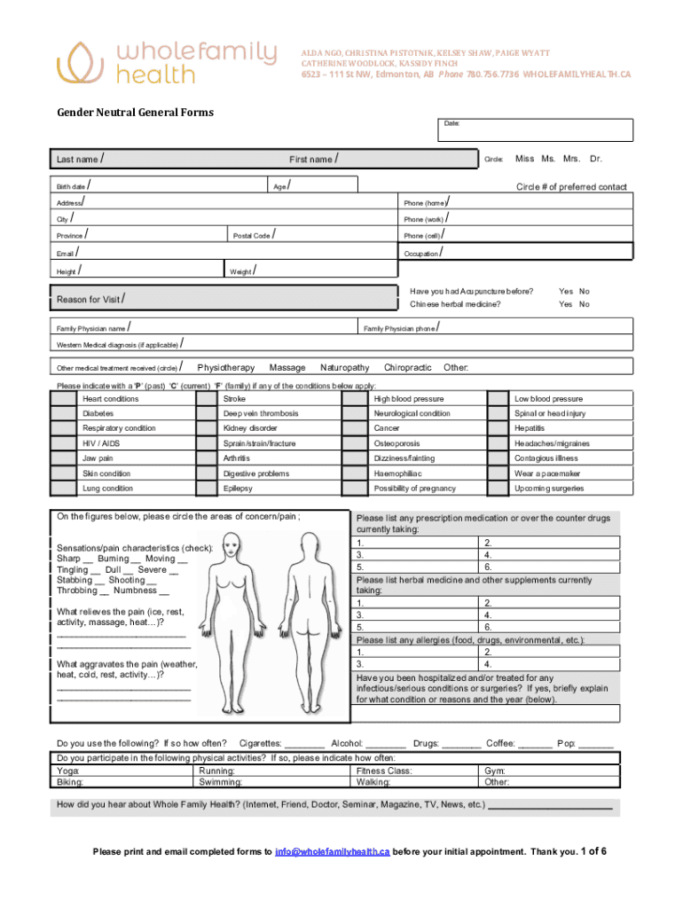 ALMA NGO, CHRISTINA PISTON, KELSEY SHAW, PAIGE WYATTCATHERINE WOODBLOCK, CASSIDY FINCH6523 111 St NW, Edmonton, AB Phone 780.756.7736 WHOLEFAMILYHEALTH. Calendar Neutral General Formulate:Last name