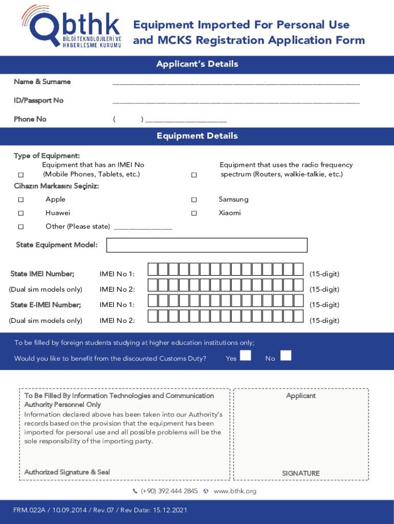 Get the free Registering an imported Mobile Phone Handset In Turkey