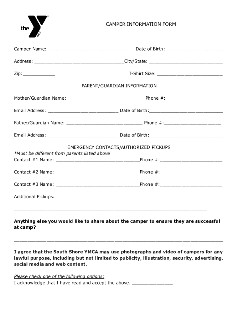 Fill out any medical information and emergency contacts to ensure the safety of the camper.