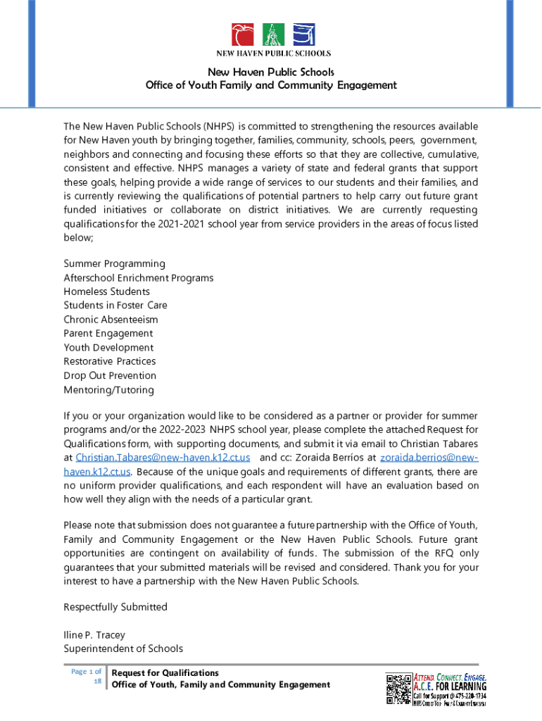 New Haven Public Schools Office of Youth Family and Community Engagement The New Haven Public Schools (NHS) is committed to strengthening the resources available for New Haven youth by bringing together,