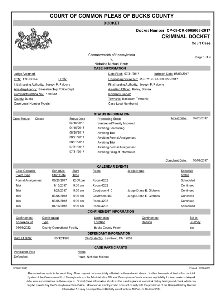DOCKET Number: CP09CR00050632017CRIMINAL DOCKET