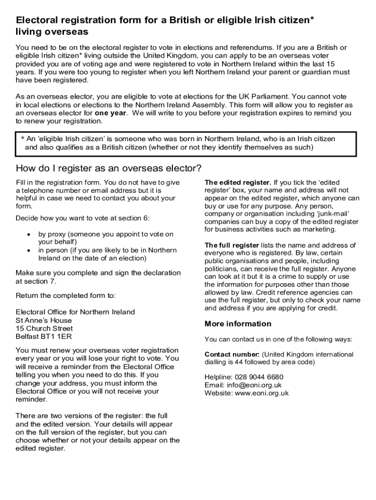 Electoral registration form for a British or eligible Irish citizen* living overseas You need to be on the electoral register to vote in elections and referendums. If you are a British or eligible