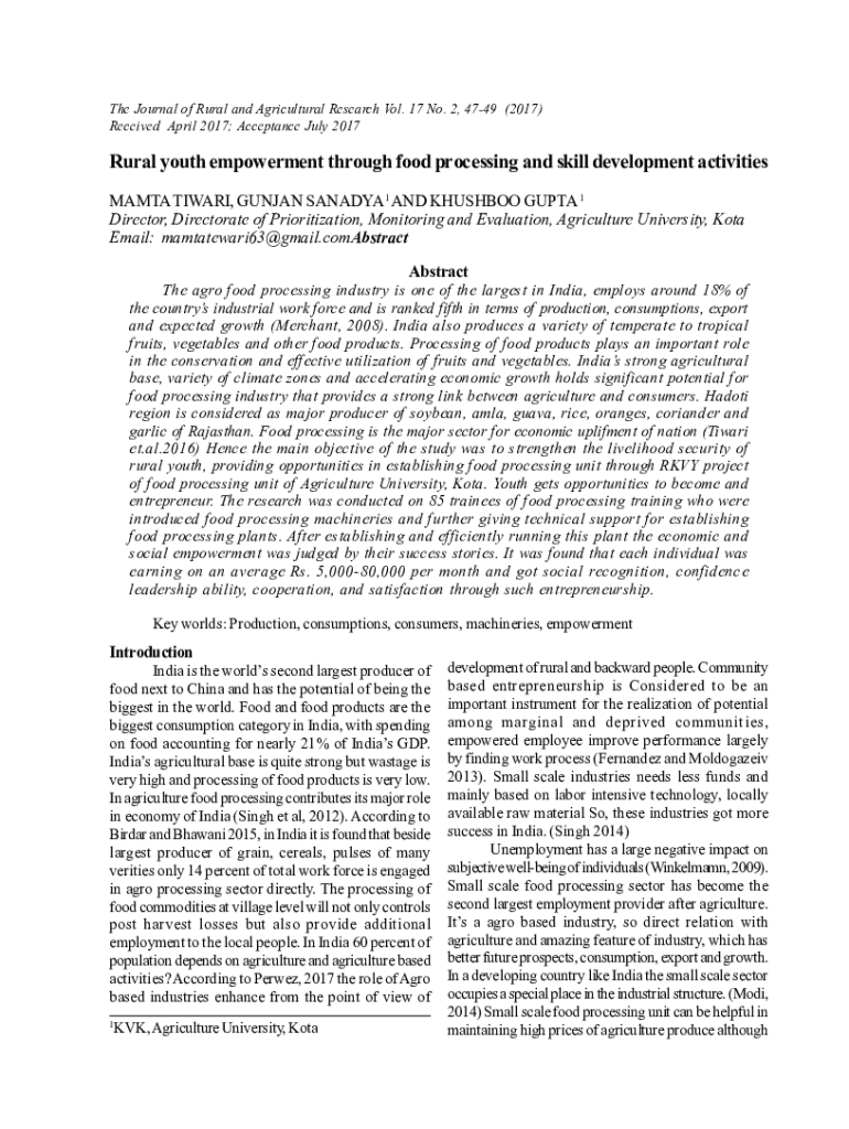 The Journal of Rural and Agricultural Research Vol. 17 No. 2, 4749 (2017) Received April 2017; Acceptance July 2017Rural youth empowerment through food processing and skill development activities