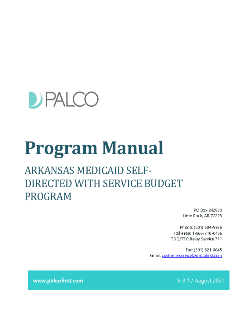Program Manual ARKANSAS MEDICAID SELF-DIRECTED WITH SERVICE BUDGET PROGRAM PO Box 242930 Little Rock, AR 72223 Phone: (501) 6049936 Toll-free: 18667100456 TDD/TTY: Relay Service 711 Fax: (501) 8210045
