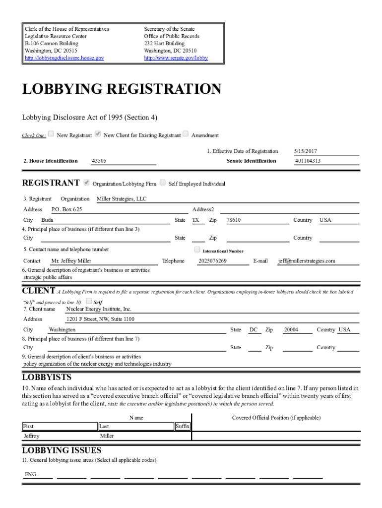 http://www.senate.gov/lobbyLOBBYINGREGISTRATION