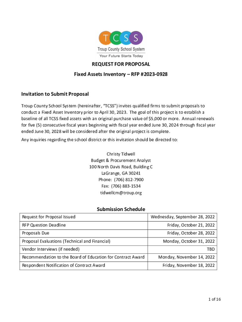 Get the free Fixed Asset Inventory Services Request for Proposals #2113