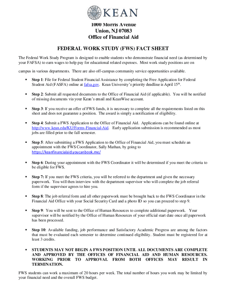 Get the free FEDERAL WORK-STUDY (FWS) FACT SHEET