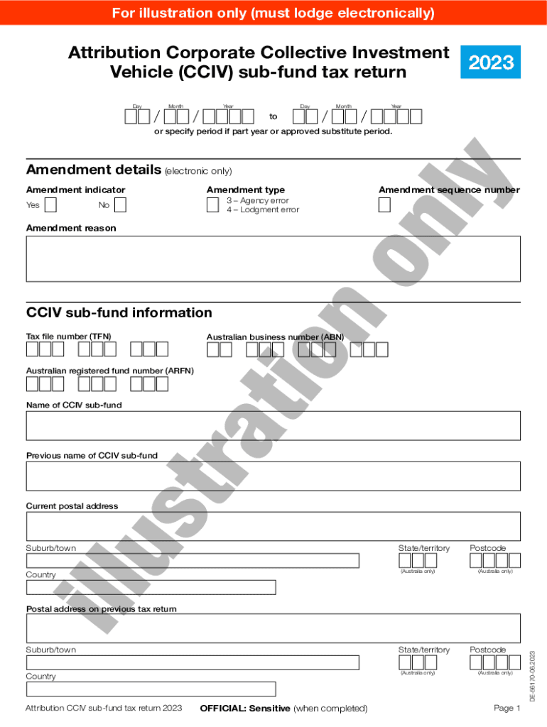For illustration only (must lodge electronically)Attribution Corporate Collective Investment Vehicle (CCTV) subfund tax return DayMonthYearDayMonth2023YeartoAmendment details (electronic only) Amendment