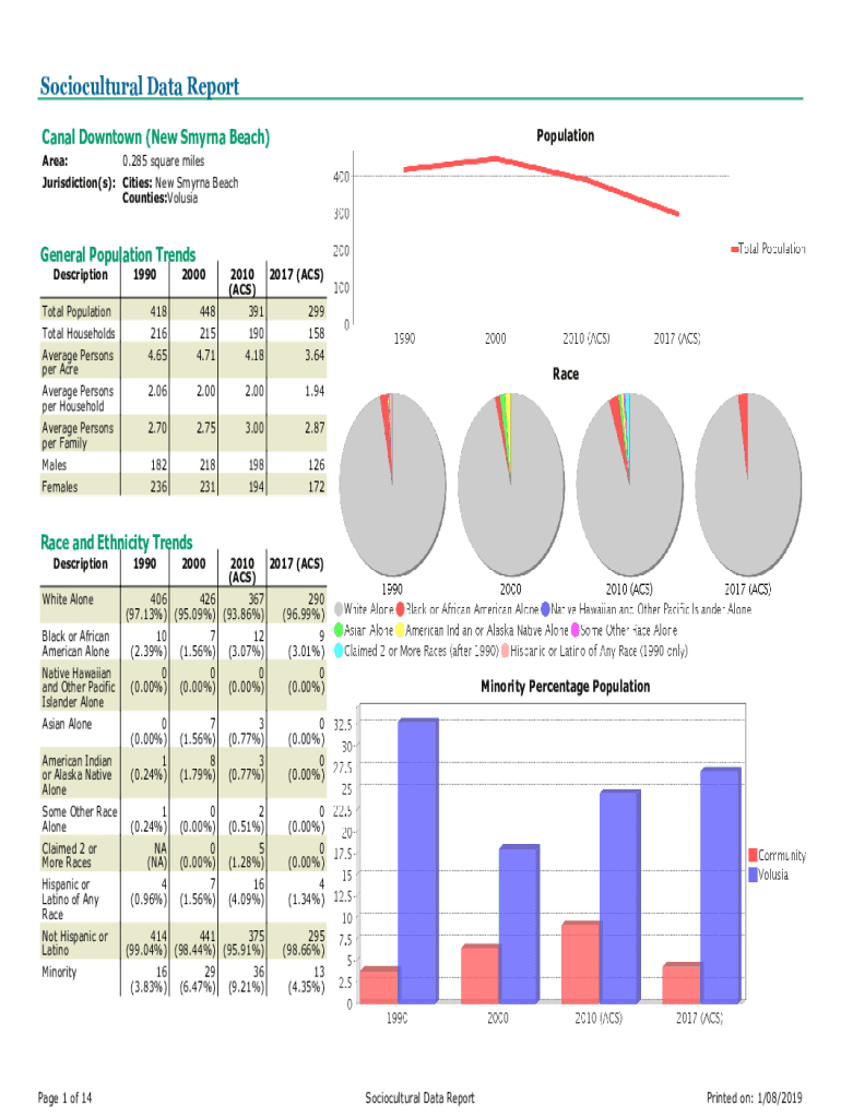 Sociocultural Data Report PopulationCanal Downtown (New Smyrna Beach) Area: 0.285 square miles Jurisdiction(s): Cities: New Smyrna Beach Counties:VolusiaGeneral Population Trends Description Total