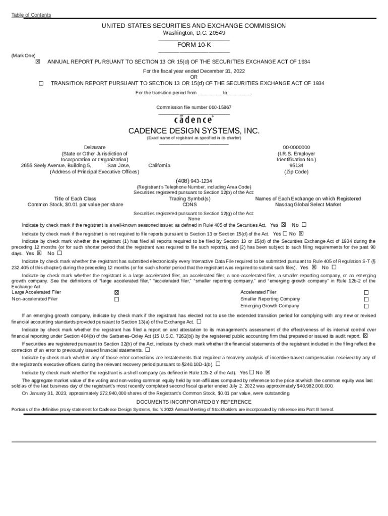The CADENCE DESIGN SYSTEMS INC (. EDGAR Online Pro is a document which can be filled-out and signed for specified needs. Then, it is provided to the actual addressee in order to provide specific info of certain kinds. The completion and signing is available in hard copy or using a trusted solution e. g. PDFfiller. Such services help to complete any PDF or Word file online. While doing that, you can edit its appearance for your requirements and put a legal electronic signature. Upon finishing, the user sends the CADENCE DESIGN SYSTEMS INC (. EDGAR Online Pro to the respective recipient or several recipients by mail or fax. PDFfiller has a feature and options that make your Word form printable. It has various settings for printing out appearance. It doesn't matter how you send a form after filling it out - physically or by email - it will always look well-designed and firm. In order not to create a new document from the beginning over and over, turn the original Word file into a template. After that, you will have a rewritable sample.
