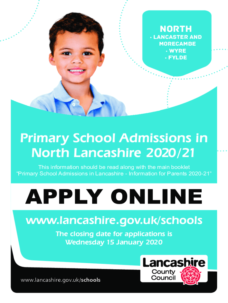 North Lancaster and Forename Were FyldePrimary School Admissions in North Lancashire 2020 /21 This information should be read along with the main booklet Primary School Admissions in Lancashire Information