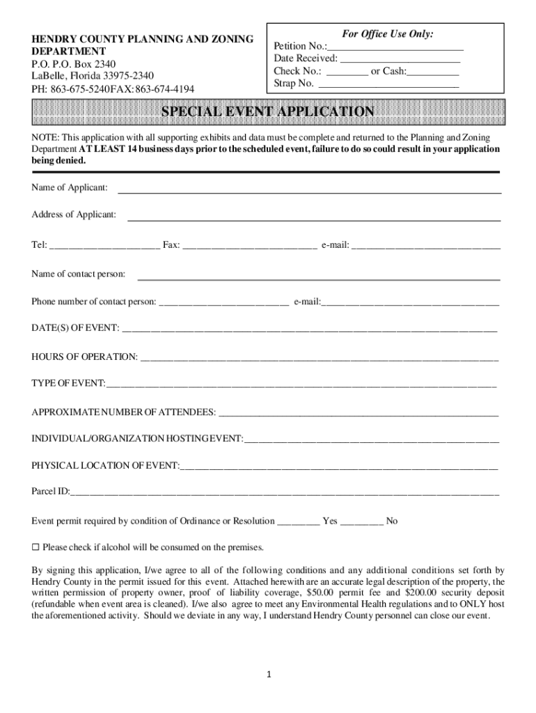 For Office Use Only: Petition No.:___ Date Received: ___ Check No.: ___ or Cash:___ Strap No. ___HENDRY COUNTY PLANNING AND ZONING DEPARTMENT P.O. P.O. Box 2340 LaBelle, Florida 339752340 PH: 8636755240
