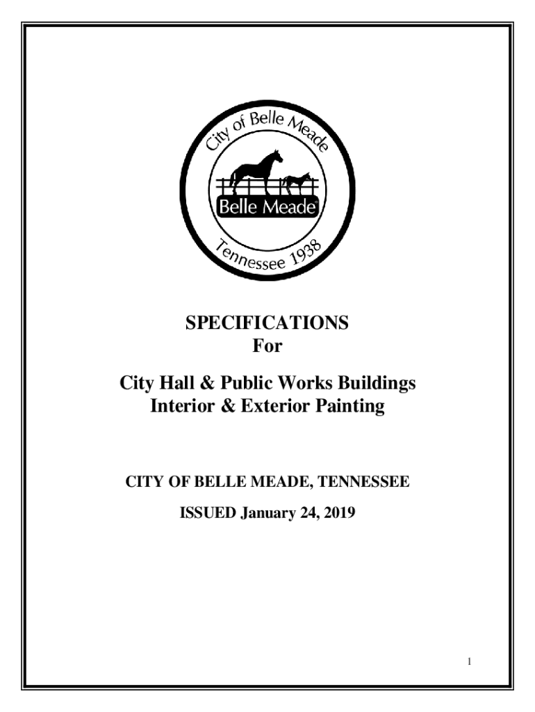 SPECIFICATIONS For City Hall & Public Works Buildings Interior & Exterior PaintingCITY OF BELLE MEADE, TENNESSEE ISSUED January 24, 20191CITY OF BELLE MEADE 2019 CITY HALL & PUBLIC WORKS BUILDINGS
