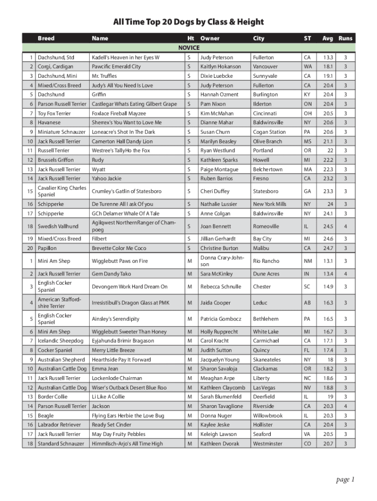 Get the free All Time Top 20 Dogs by Breed & Class