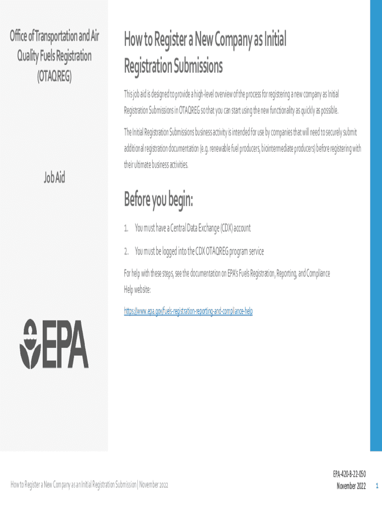Office of Transportation and Air Quality Fuels Registration (STARRED)How to Register a New Company as Initial Registration Submissions This job aid is designed to provide a high level overview of