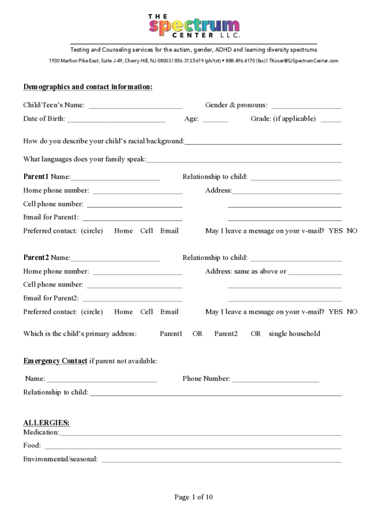 ___ Testing and Counseling services for the autism, gender, ADHD and learning diversity spectrums 1930 Carlton Pike East, Suite J49, Cherry Hill, NJ 08003 | 856.313.5619 (pH/TXT) 888.496.4170 (fax)