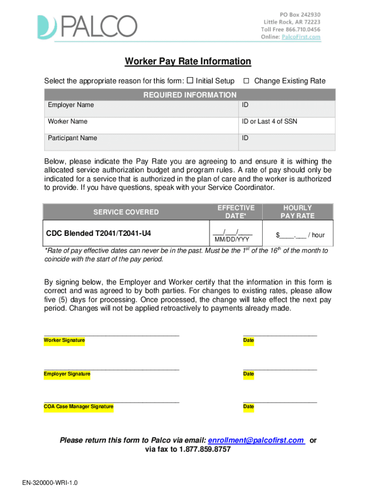 Worker Pay Rate Information Select the appropriate reason for this form: Initial Setup Change Existing RateREQUIRED INFORMATION Employer NameIDWorker Named or Last 4 of Nonparticipant NameIDBelow,