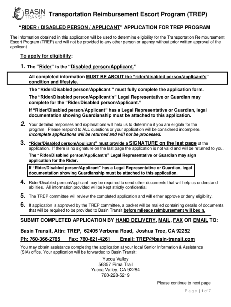 Transportation Reimbursement Escort Program (TREE) RIDER / DISABLED PERSON / APPLICANT APPLICATION FORT REP PROGRAM The information obtained in this application will be used to determine eligibility