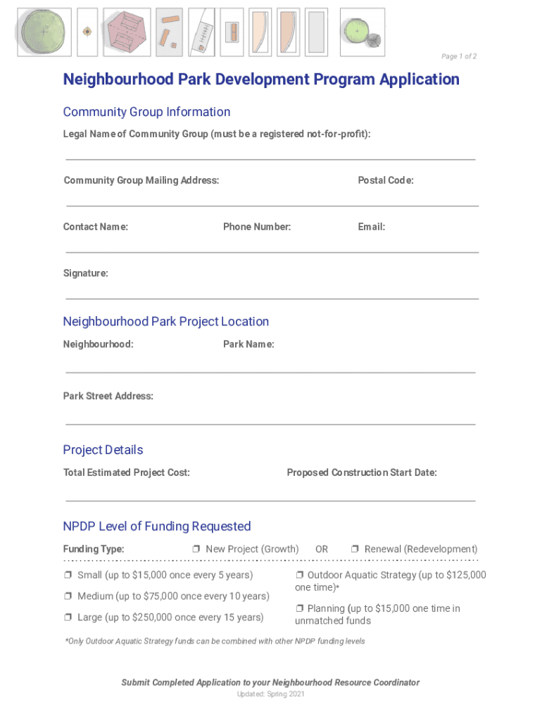 Page 1 of 2Neighbourhood Park Development Program Application Community Group Information Legal Name of Community Group (must be a registered notforprofit):Community Group Mailing Address:Contact