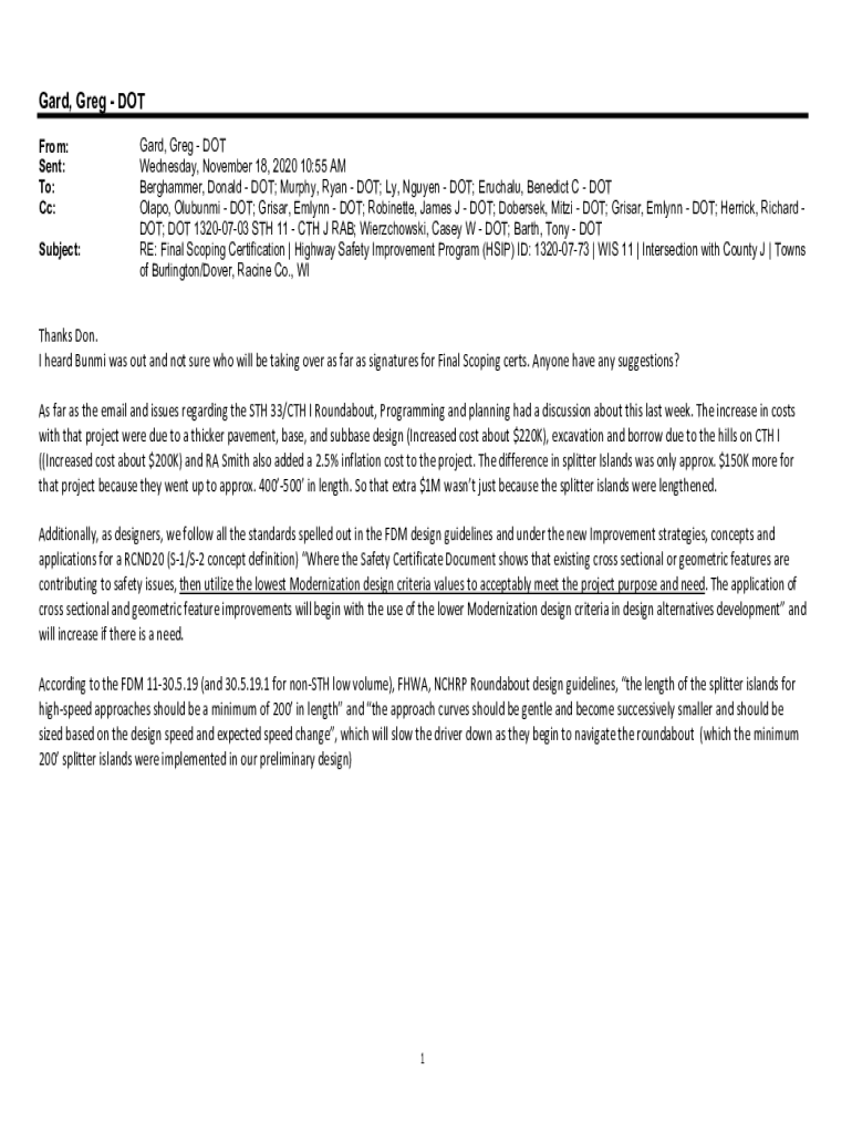 Hard, Greg Dots From: Sent: To: Cc: Subject:Hard, Greg DOT Wednesday, November 18, 2020 10:55 AM Berg hammer, Donald DOT; Murphy, Ryan DOT; LY, Nguyen DOT; Crucial, Benedict C DOT Lap, Olubunmi DOT;