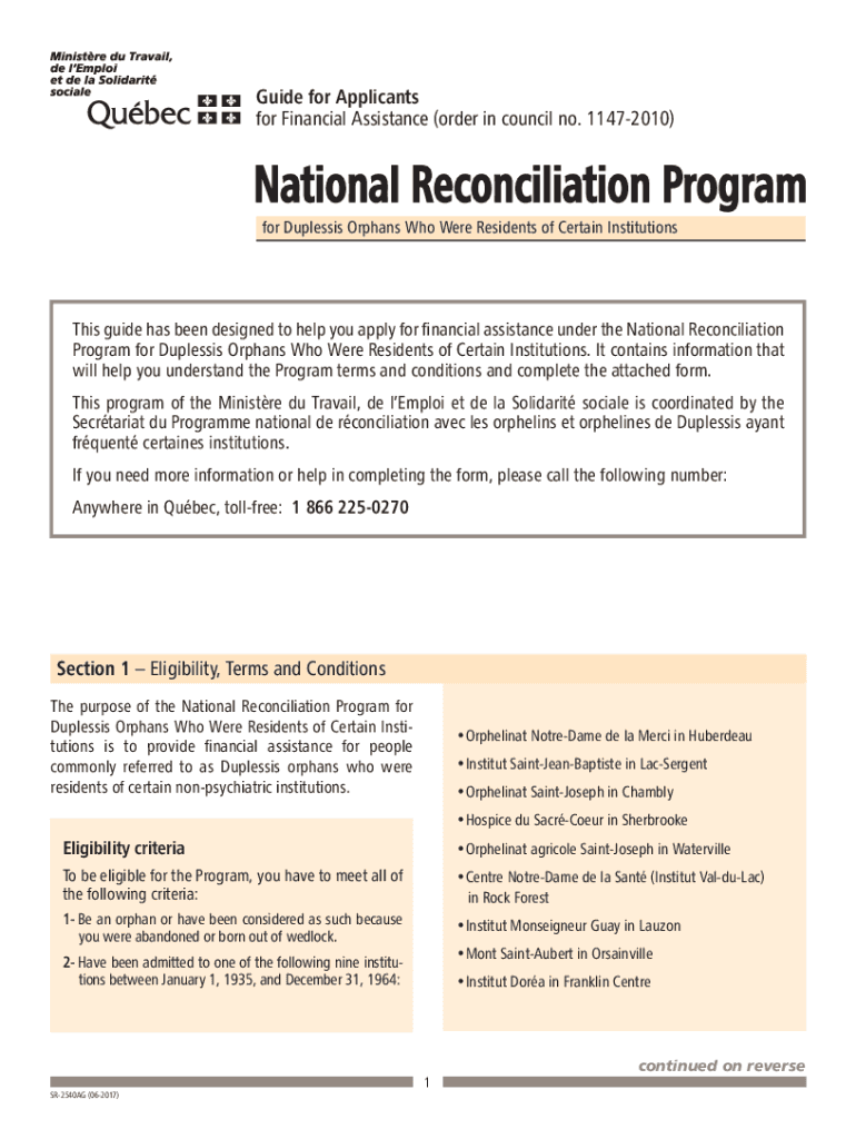 for Financial Assistance (order in council no. 11472010)for Duplexes Orphans Who Were Residents of Certain InstitutionsThis guide has been designed to help you apply for financial