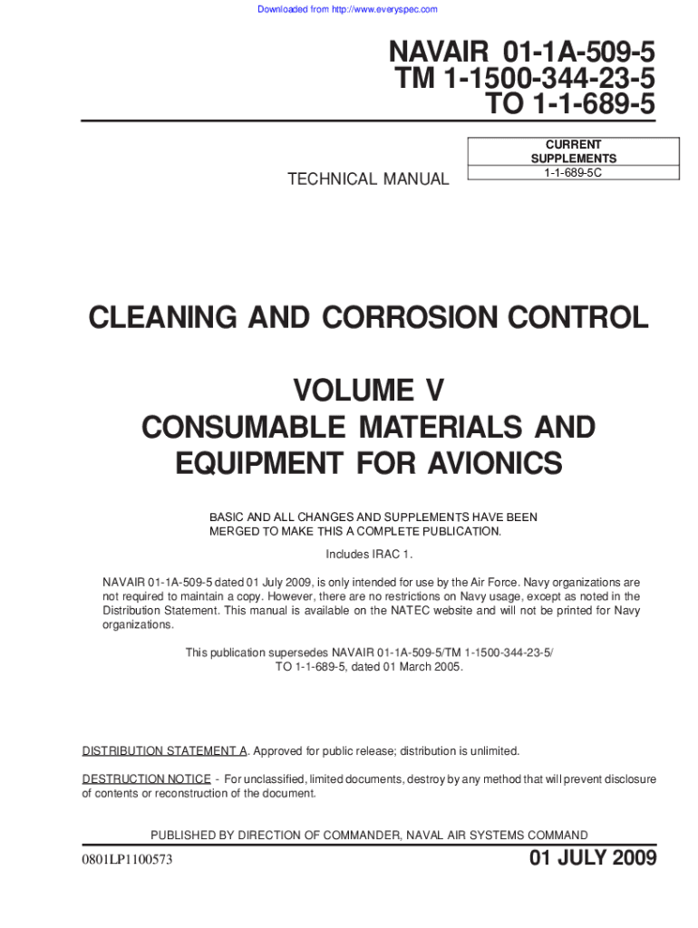 Downloaded from http://www.everyspec.comNAVAIR 011A5095 TM 11500344235 TO 116895 TECHNICAL MANUALCURRENT SUPPLEMENTS 116895CCLEANING AND CORROSION CONTROL VOLUME V CONSUMABLE MATERIALS AND EQUIPMENT