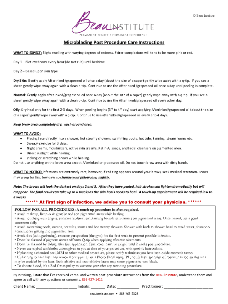 Beau InstituteMicroblading Post Procedure Care Instructions