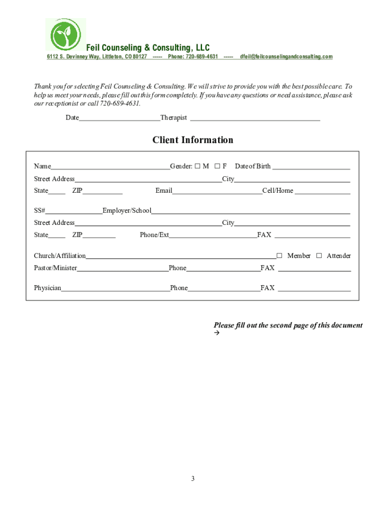 FCC INTAKE DOCUMENTS Please fill out these documents completely; missing information could delay the start of your therapy. If you designate another person (such as a spouse or a witness) to also