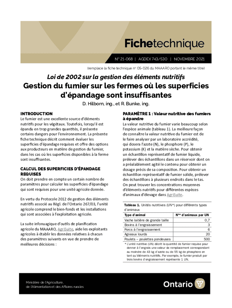 Obtenir le gratuit 21-068Gestion du fumier sur les fermes o les superficies dpandage sont insuffi...