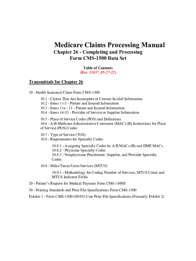 Medicare Claims Processing ManualChapter 26 Completing and Processing