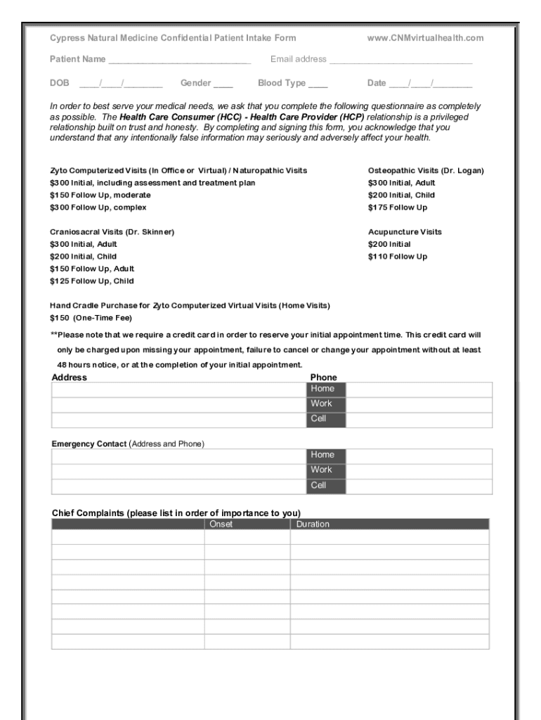 Anyone who is seeking naturopathic care and is visiting a new healthcare provider for the first time will need to fill out a new patient intake formnaturopathic.