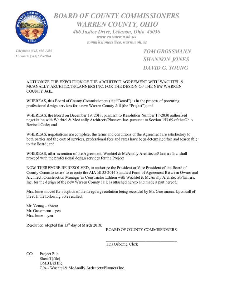 BOARD OF COUNTY COMMISSIONERS WARREN COUNTY, OHIO 406 Justice Drive, Lebanon, Ohio 45036 www.co.warren.oh.us commissioners. Warren.oh.custom GROSSMAN SHANNON JONES DAVID G. YOUNGTelephone (513) 695