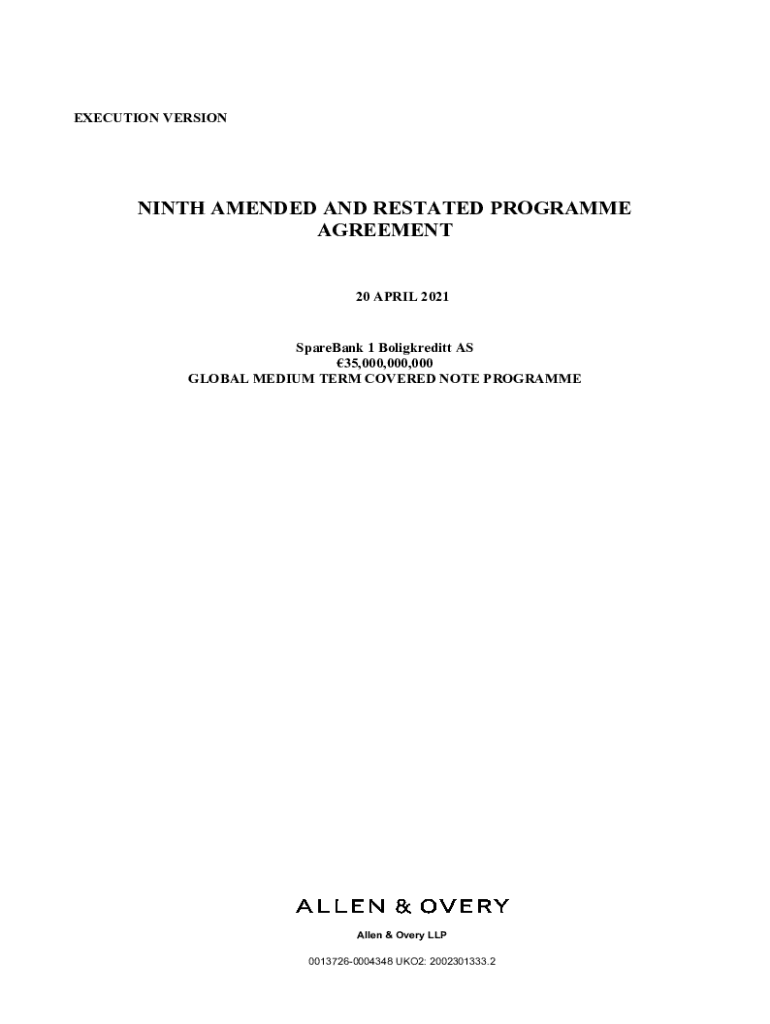 EXECUTION VERSIONING AMENDED AND RESTATED Program AGREEMENT 20 APRIL 2021 Spartan 1 Boligkreditt AS 35,000,000,000 GLOBAL MEDIUM TERM COVERED NOTE Programmable & Very LLP 00137260004348 UKO2: 2002301333.2CONTENTS